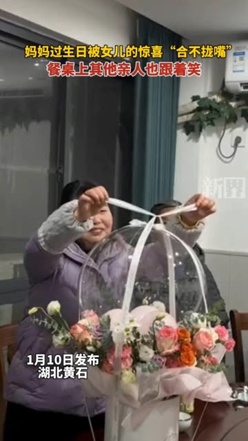 16次播放 | 03:00妈妈过生日被女儿的惊喜"合不拢嘴",餐桌上其他亲人也跟着笑。