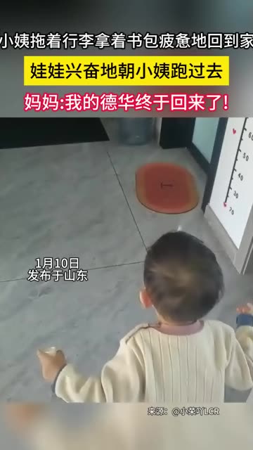 10次播放 | 00:08小姨拖着行李拿着书包疲惫地回到家,娃娃兴奋地朝小姨跑过去,妈妈:我的德华终于回来了!