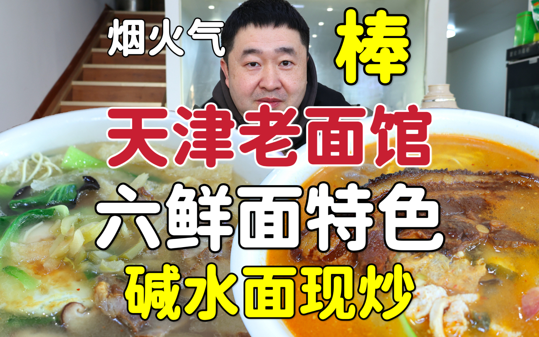 天津路边老面馆,六鲜面是特色,碱水面现炒大肉皮肚一锅出