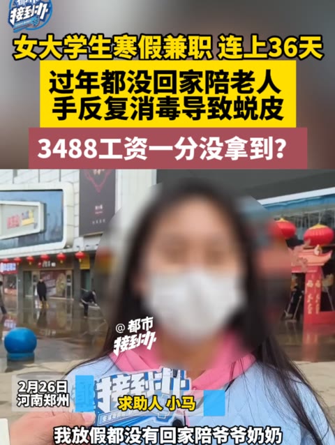 2月26日,河南郑州。女大学生寒假兼职连上36天,过年都没回家陪老人,手反复消毒导致蜕皮,34...