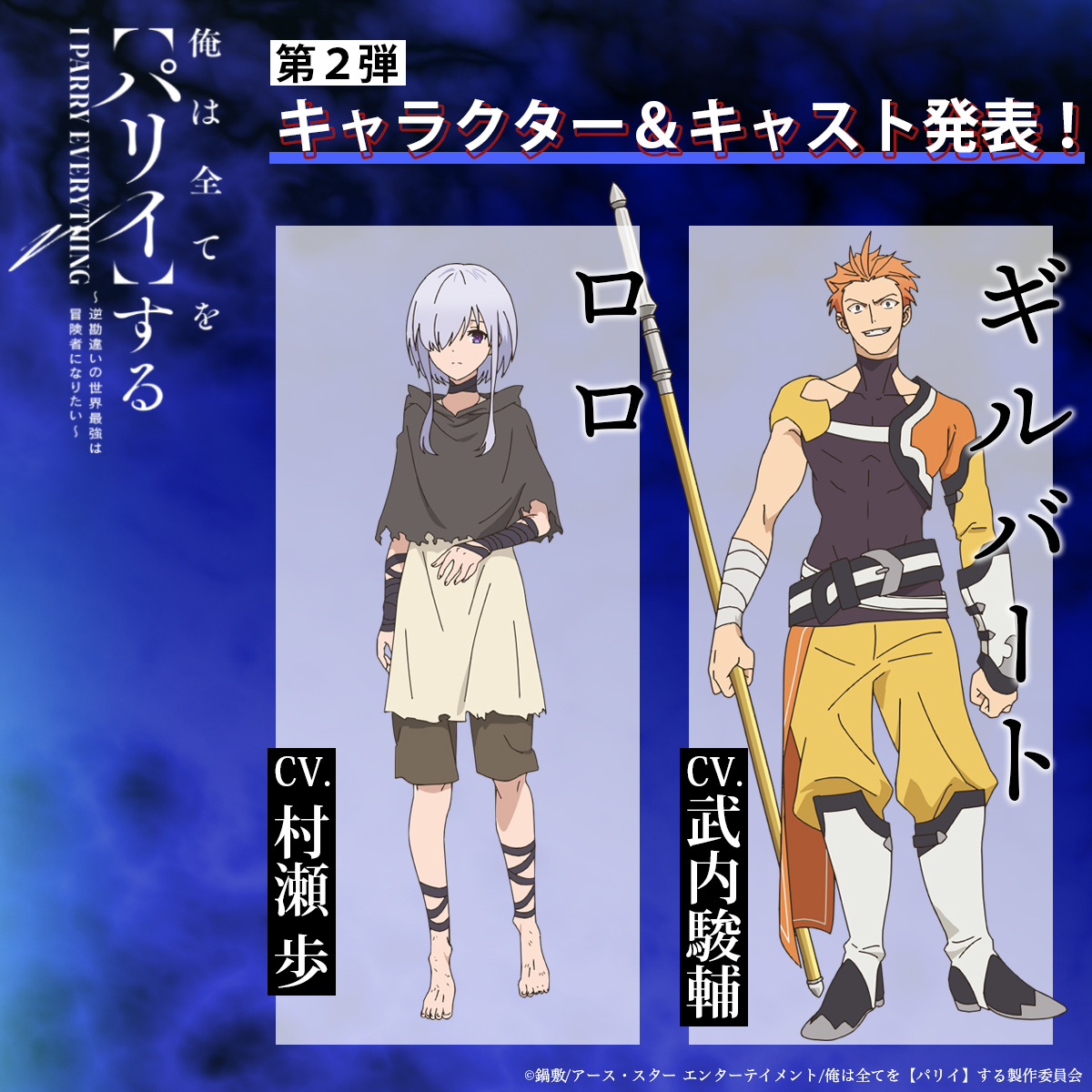 电视动画《我要【招架】一切 ~反误解的世界最强想成为冒险者~》公开主视觉图,追加部分制作人员及声优:村濑步、武内骏辅,确定片头曲为铃木杏奈演唱的《AMBITION》,片尾曲为ウタヒメドリーム オールス