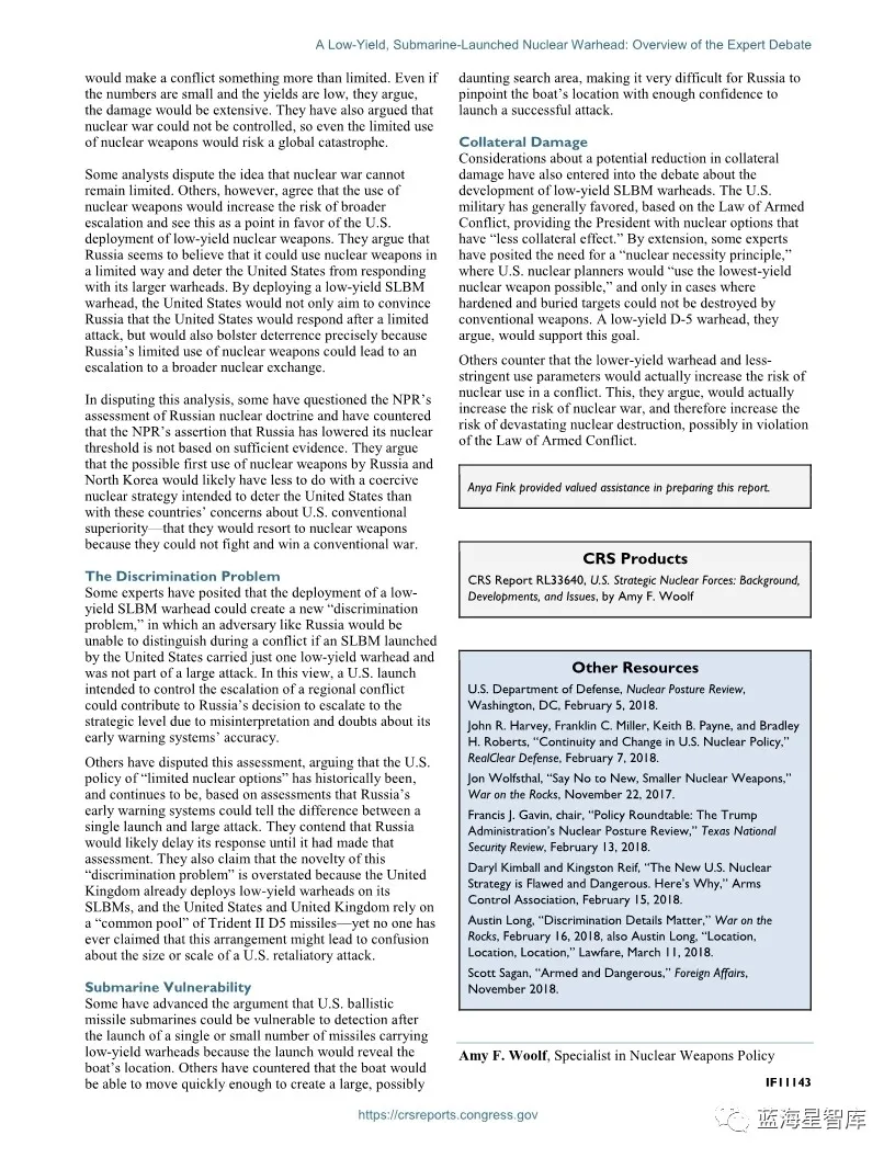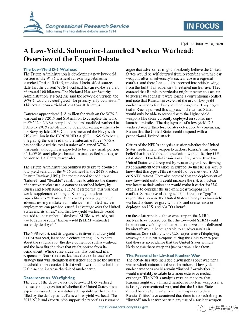 【装备发展】美国对发展潜射弹道导弹低当量核弹头的争论
