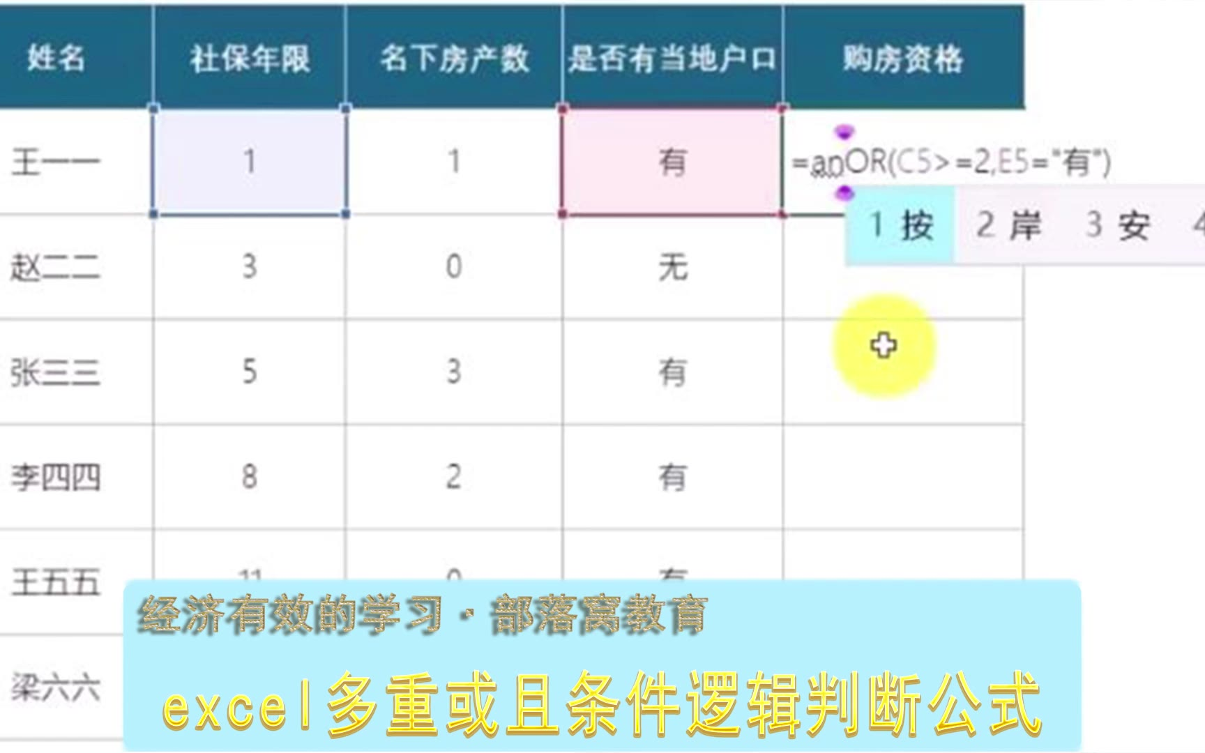 excel多重或且条件逻辑判断公式