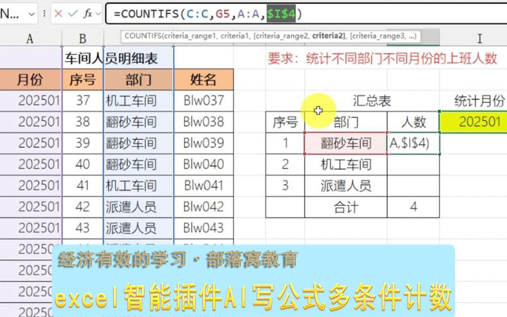 excel智能插件AI写公式多条件计数