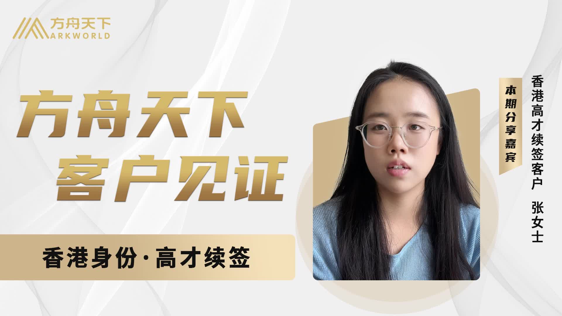 0次播放 | 01:19方舟客户说|香港身份·高才客户张女士分享