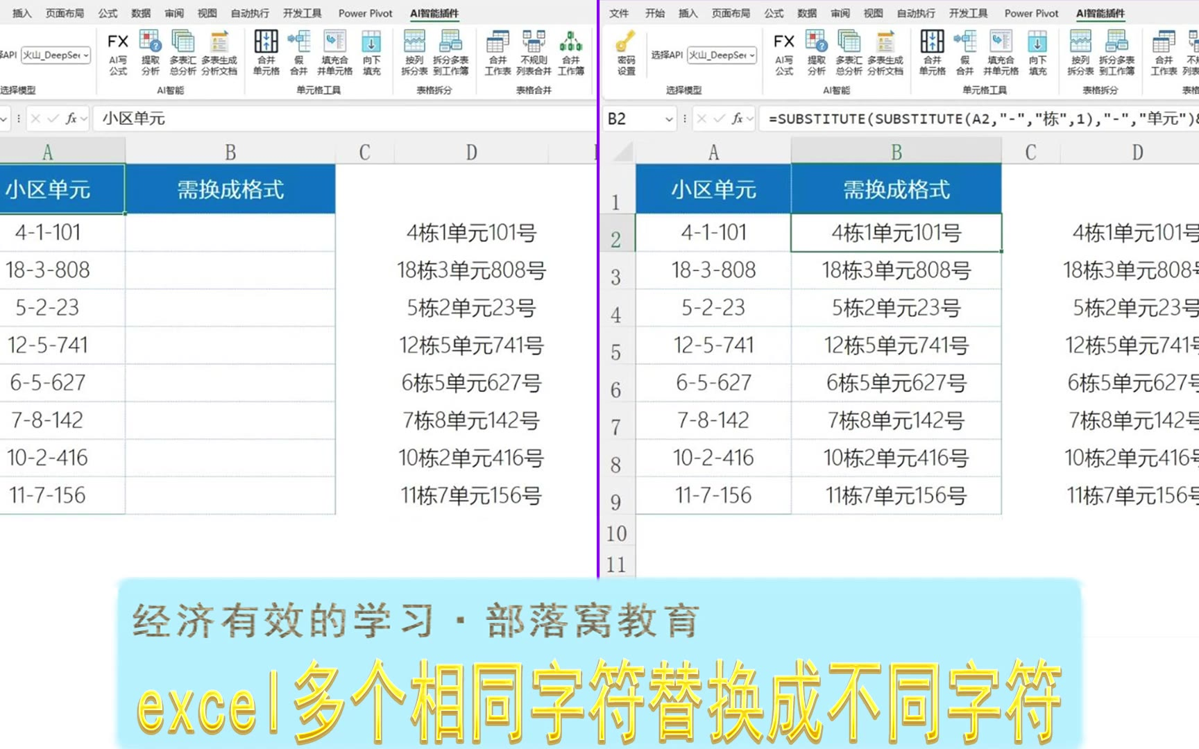 excel多个相同字符替换成不同字符