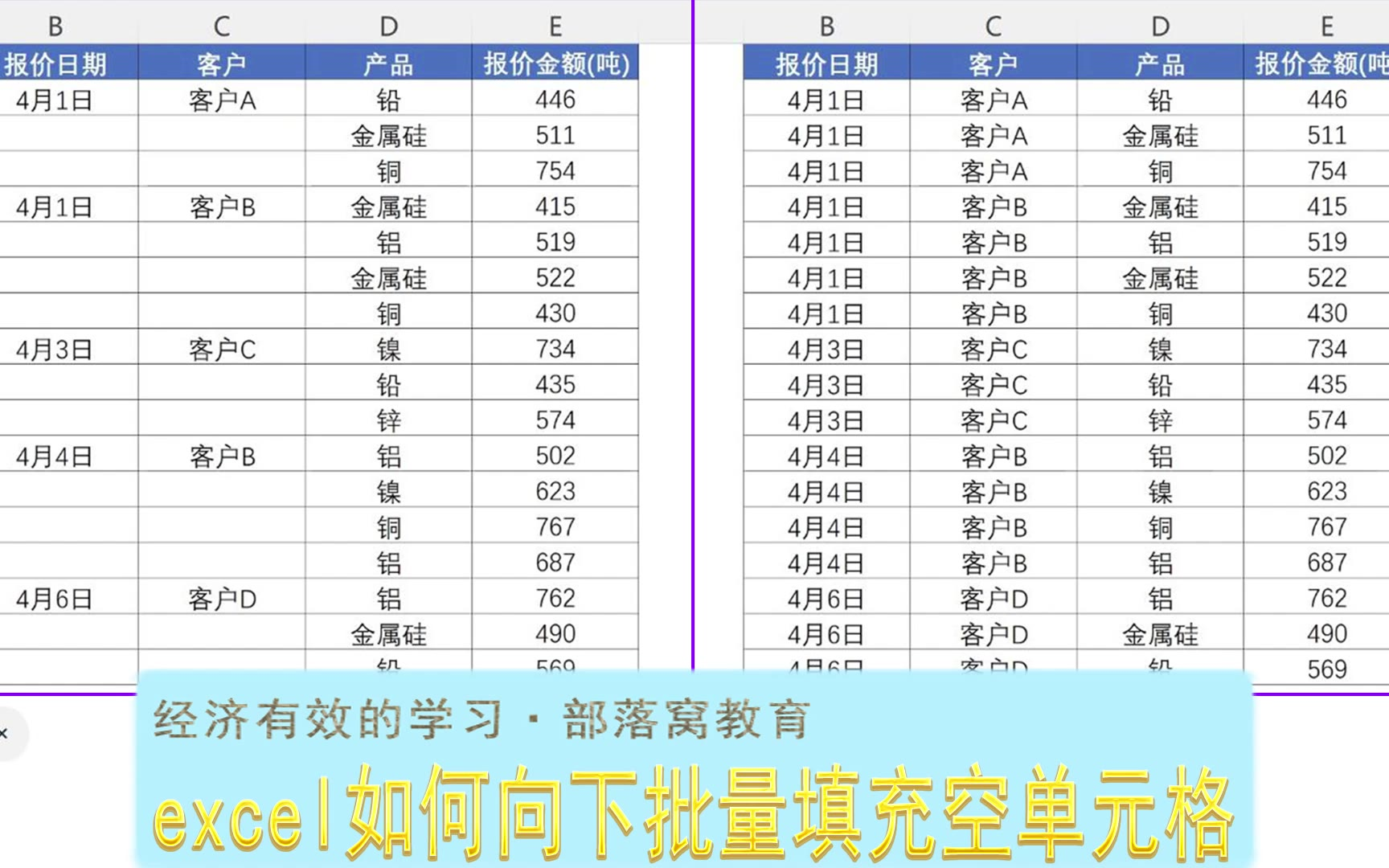 excel如何向下批量填充空单元格?