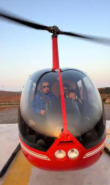 2025年元旦前夜,湖南永州的天空划过一道低空飞行的轨迹。一架罗比逊R44直升机稳稳降落在东安县鹿马桥镇的一片空地上,舱门打开,两个小男孩蹦跳着跑下来,一边喊着“爷爷”,一边扑进老人怀里。驾驶舱里走出