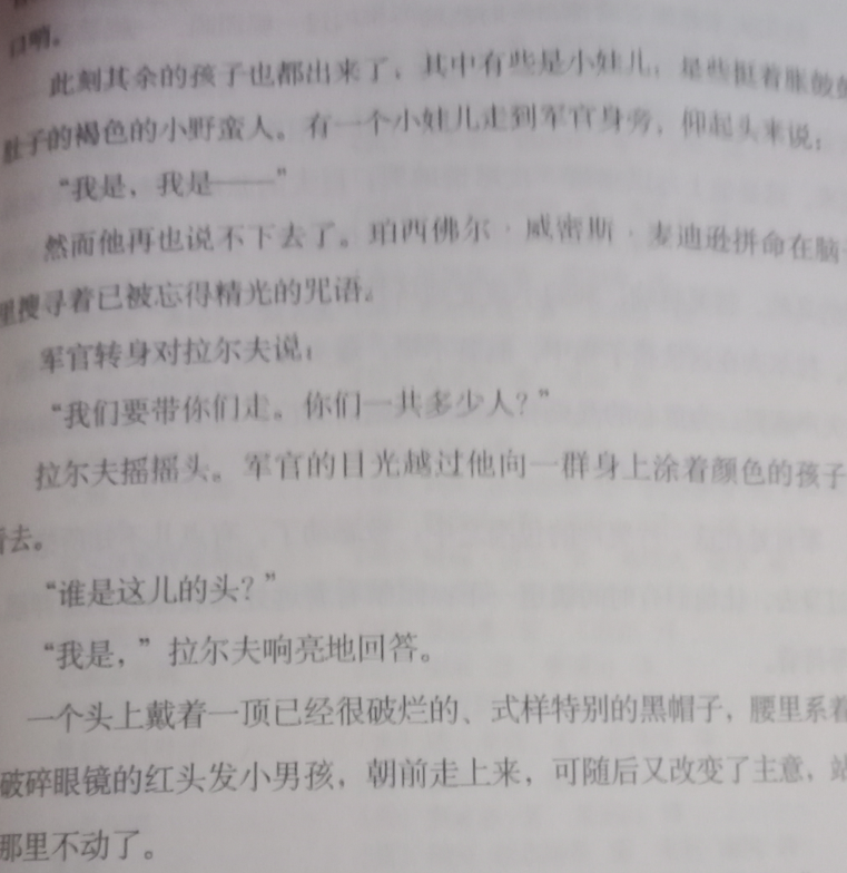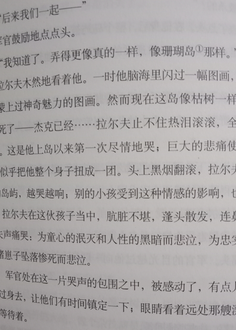 猪崽子谨慎地盯着朝他走来的人影。现在他有时候觉得,如果除去眼镜,在另一只眼睛上戴上一块镜片,倒可以看得更清楚一点;在发生了所有这些事情以后,但即便使用这只好眼睛来看,拉尔夫还是拉尔夫,绝对不会错。此刻