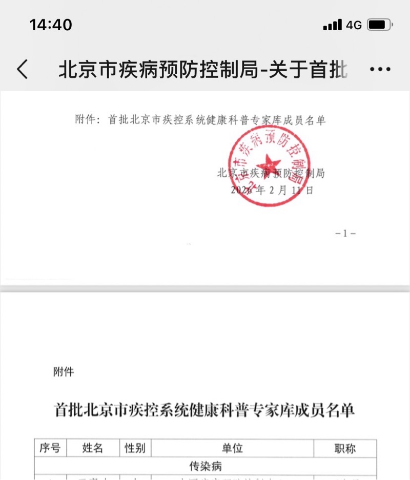 号外号外,有幸入选首批北京市疾控系统健康科普专家库!