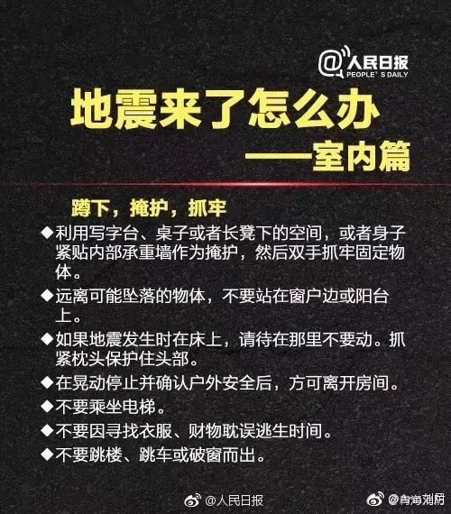 近几天发生了地震,这里给一些自救知识。