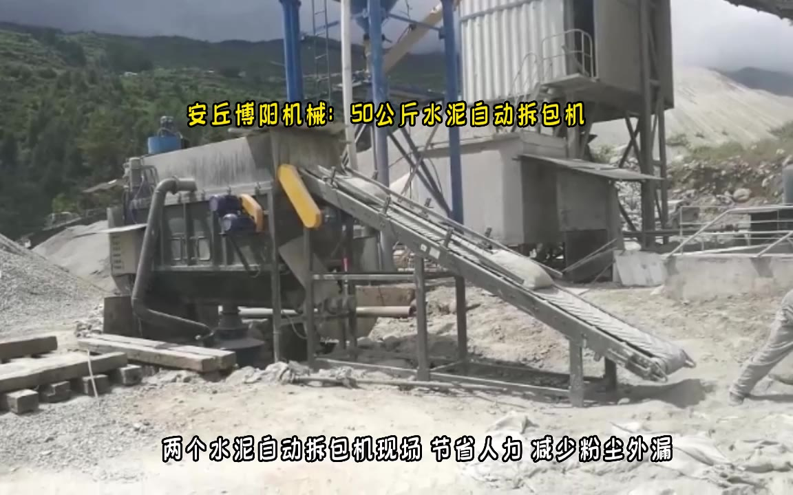 0次播放 | 00:31水泥自动拆包机 50公斤袋料自动拆袋机 新疆水泥袋拆包现场