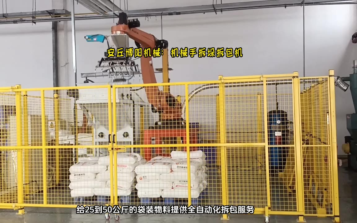 0次播放 | 00:27袋装硫磺机械手拆包机 全自动拆包机系统
