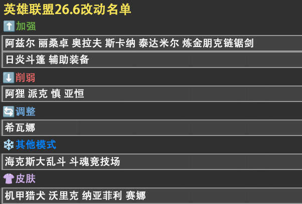 共16张LOL26.6前瞻 阿兹尔…丽桑卓加强 亚恒…慎削弱 希瓦娜重做