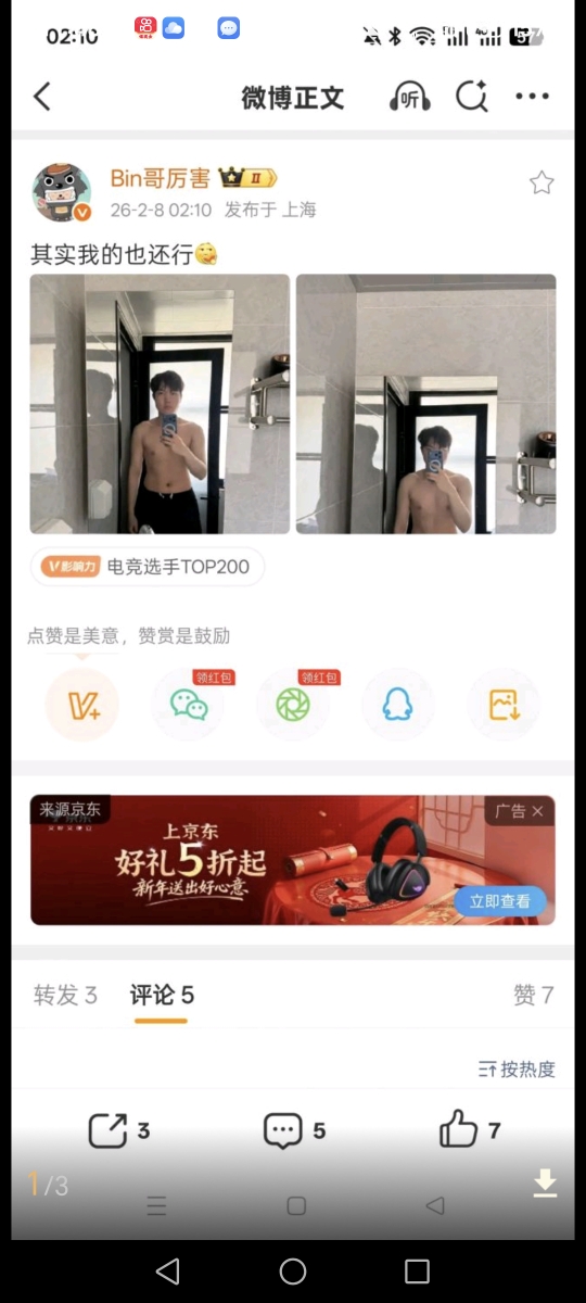 2233次播放 | 10:58今日bin笑话:《英雄联盟》lpl选手gala发博晒健身照片,bin紧跟发博:我的也不差