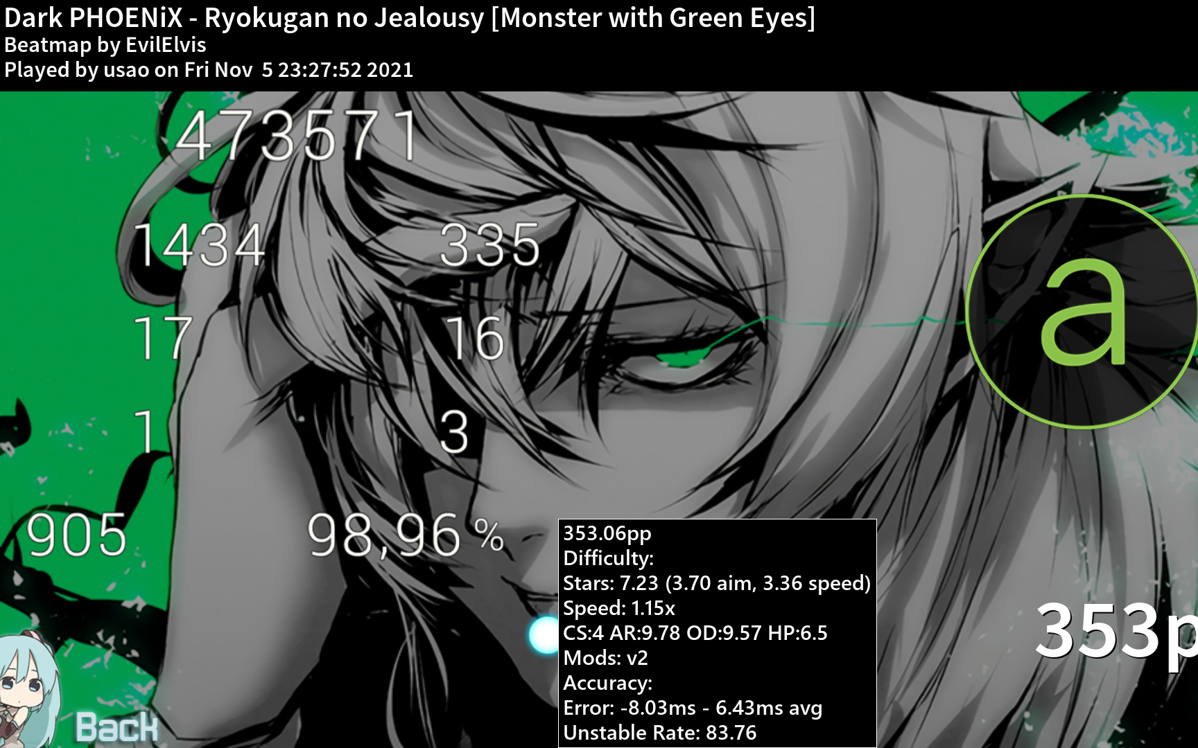755次播放 | 03:31[McOsu] 2021-11-29 1 Miss