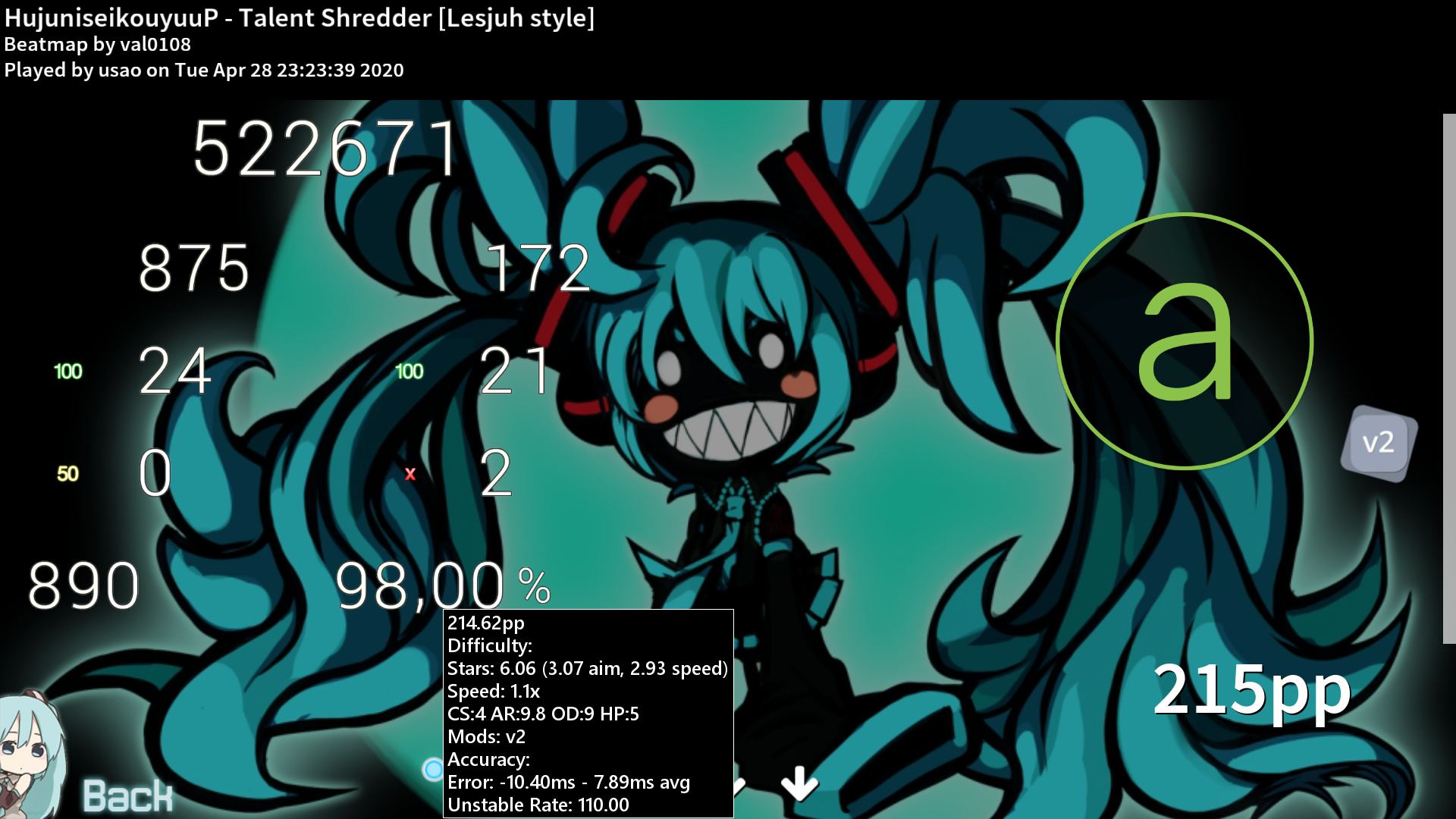 606次播放 | 02:27[McOsu] 回坑试试 Tsukinami 水