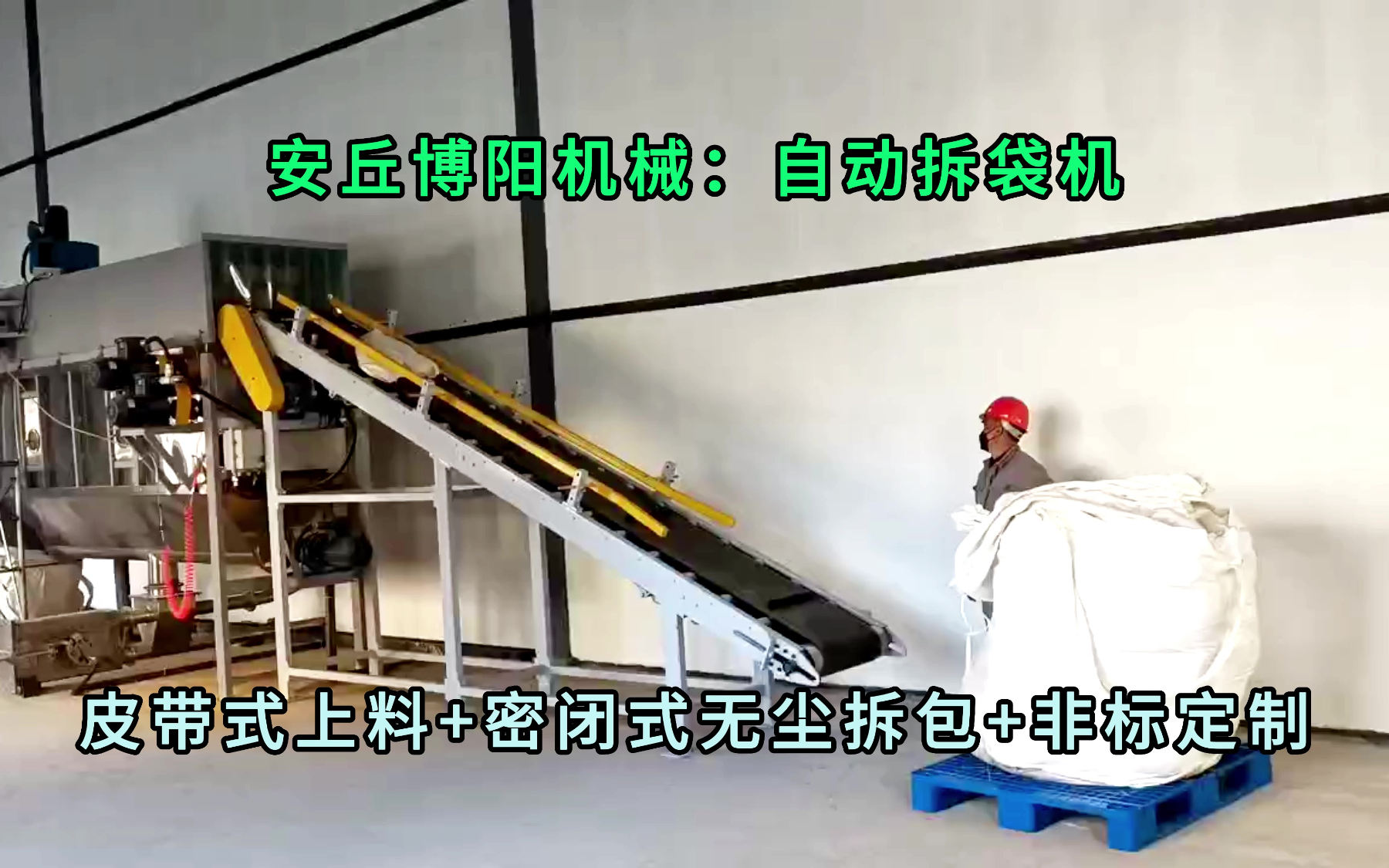0次播放 | 00:33氢氧化钠自动拆包卸料机 无尘粉料自动拆袋机无扬尘