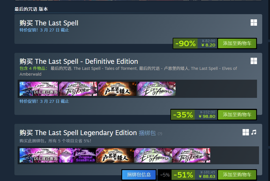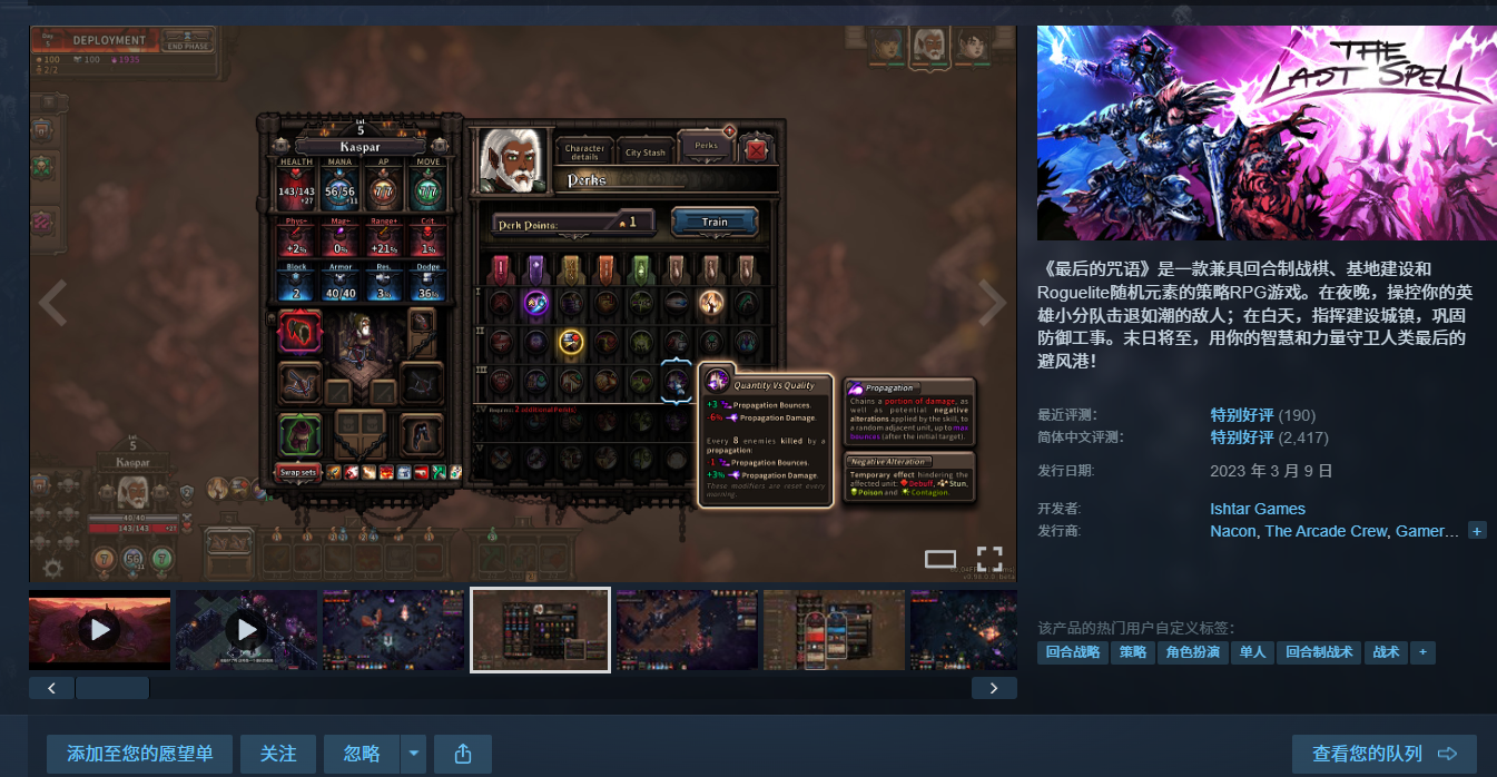 回合制策略Roguelite游戏《最后的咒语》在Steam春季特卖中迎来新史低折扣。标准版原价82元,当前-90%后售价8.2元,达到了游戏发售以来的最低价格。本次促销将持续至3月27日。本作由Ish