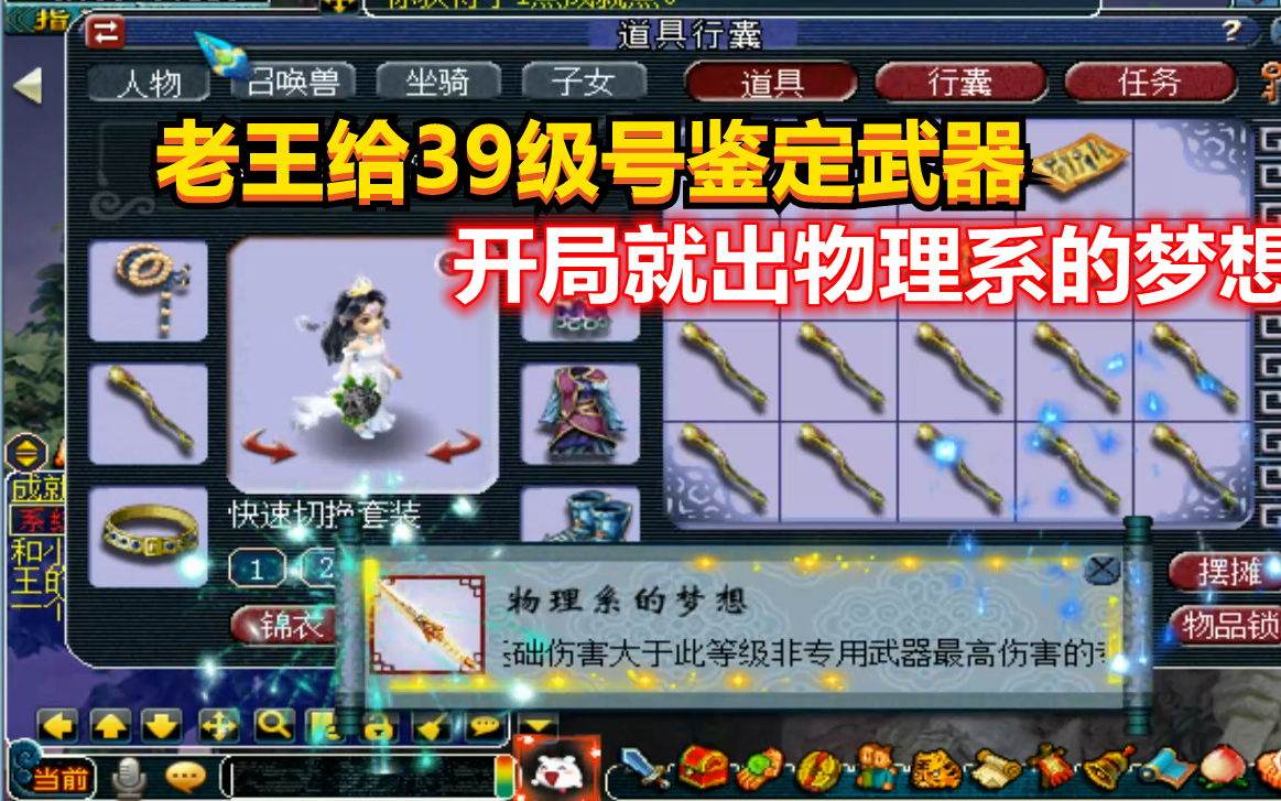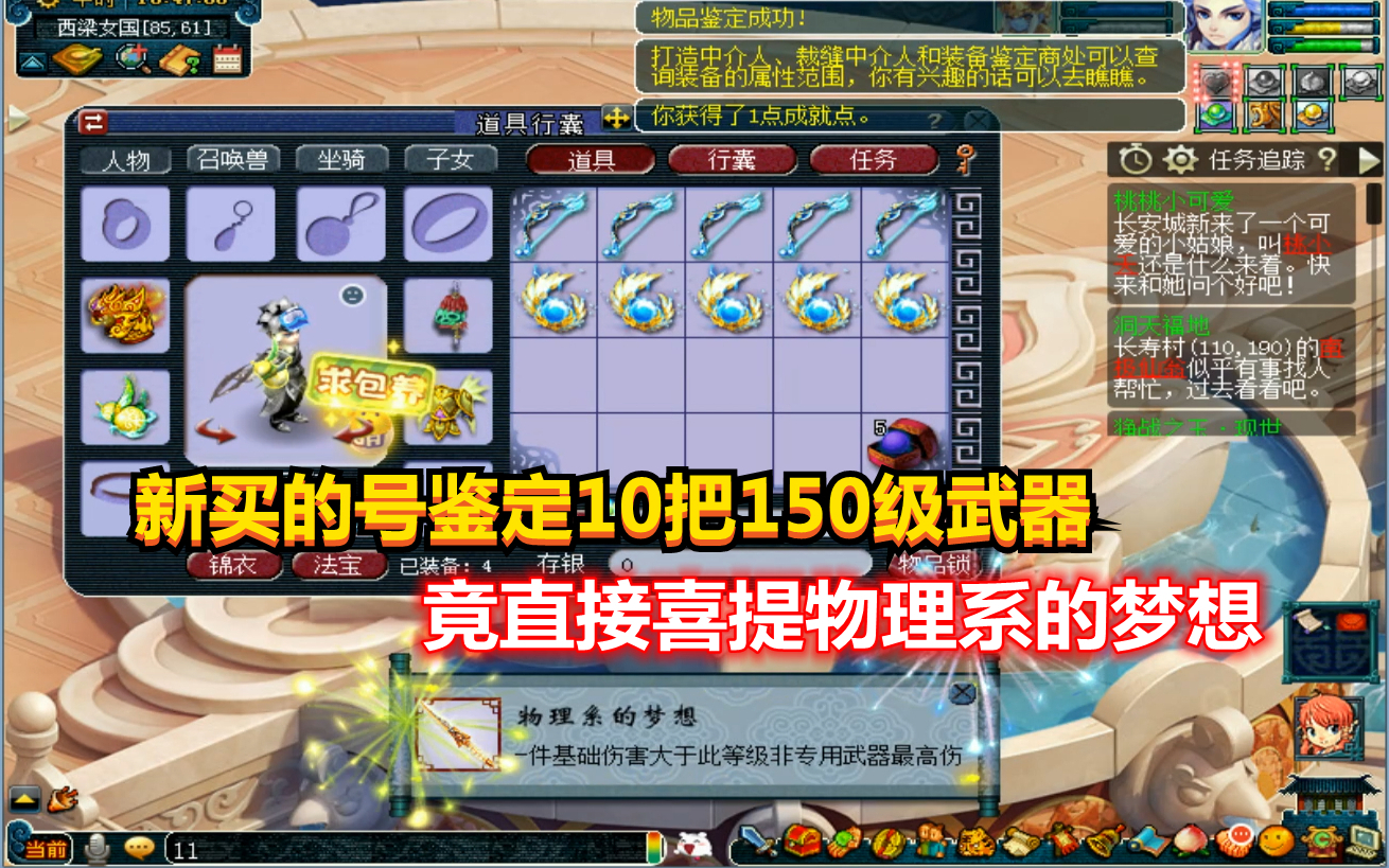 4427次播放 | 04:29梦幻西游:新买的号鉴定10把150级武器,竟直接喜提物理系的梦想
