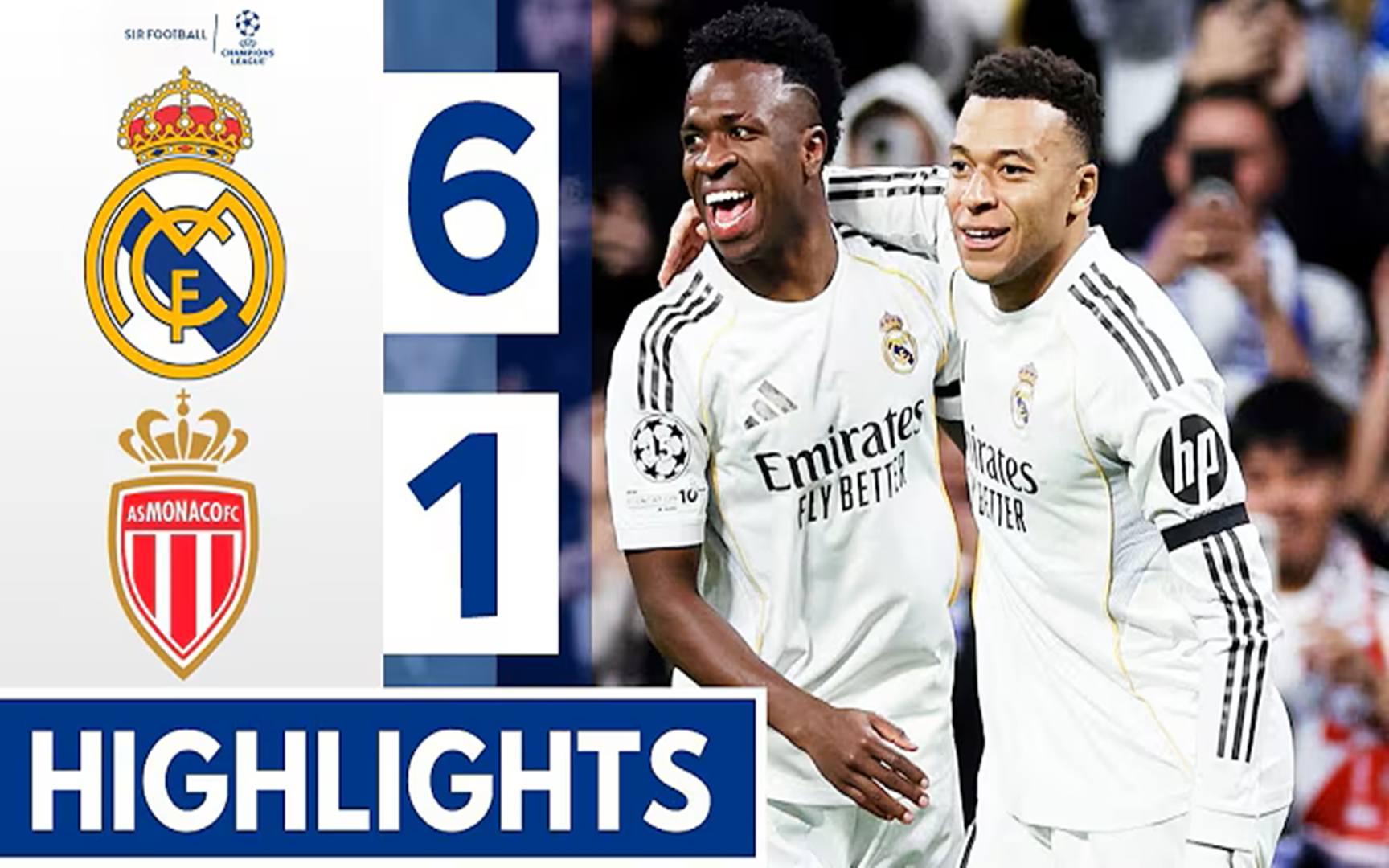 维尼修斯2传1射!姆巴佩梅开二度!皇家马德里6-1摩纳哥