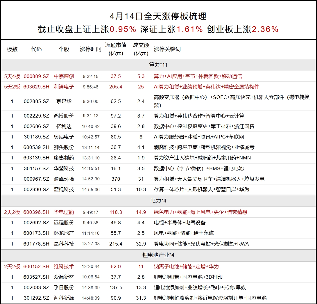 56次播放 | 00:354月14日涨停板梳理
