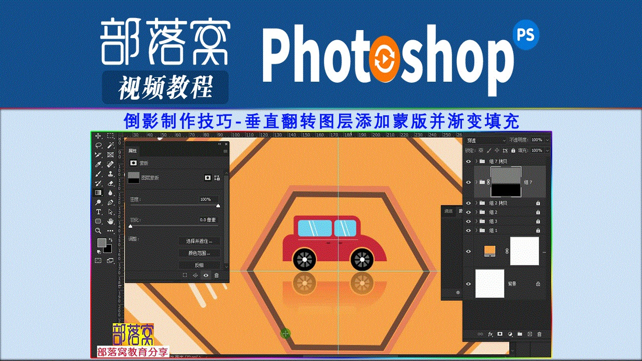 ps倒影制作技巧视频:垂直翻转图层添加蒙版并渐变填充