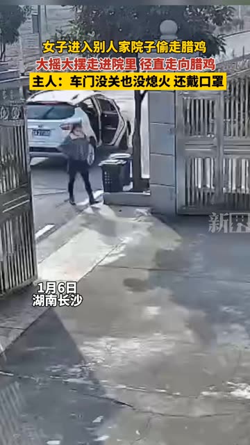 女子进入别人家院子偷走腊鸡,大摇大摆走进院里 径直走向腊鸡,主人:车门没关也没熄火 还戴口罩 ...