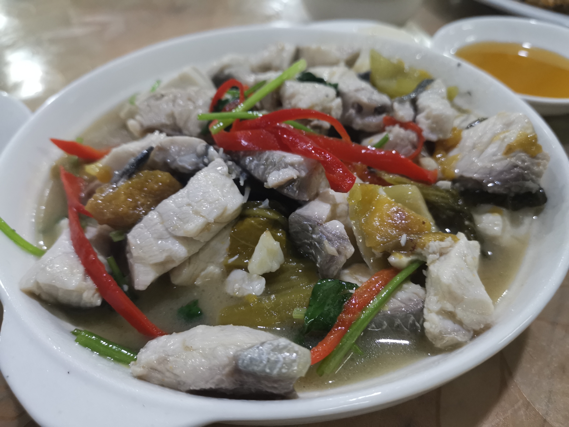 早上起床,窗外倾盆大雨。临近中午的时候,雨变小了,想了一下,这是在暗示吃顿好的。最近不想吃肉,想吃鱼,于是前往饶平县汤溪水库吃鱼头。 汤溪水库位于饶平县北部的黄岗河中游,以灌溉、防洪为主,兼有发电、