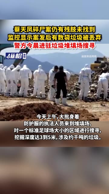 0次播放 | 00:09碎尸案仍有残肢未找到,监控显示案发后有数袋垃圾被丢弃,警方今晨进驻垃圾堆填场搜寻