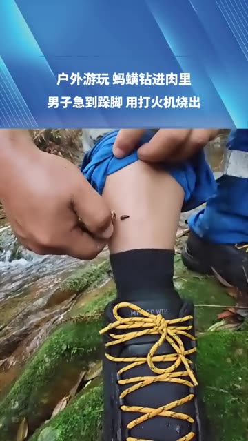 共11张户外游玩,蚂蟥钻进肉里,男子急到跺脚用打火机烧出