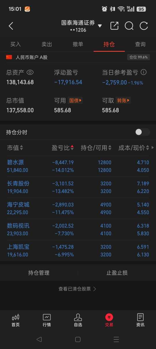 旧号解套了,重新在新号补回一些