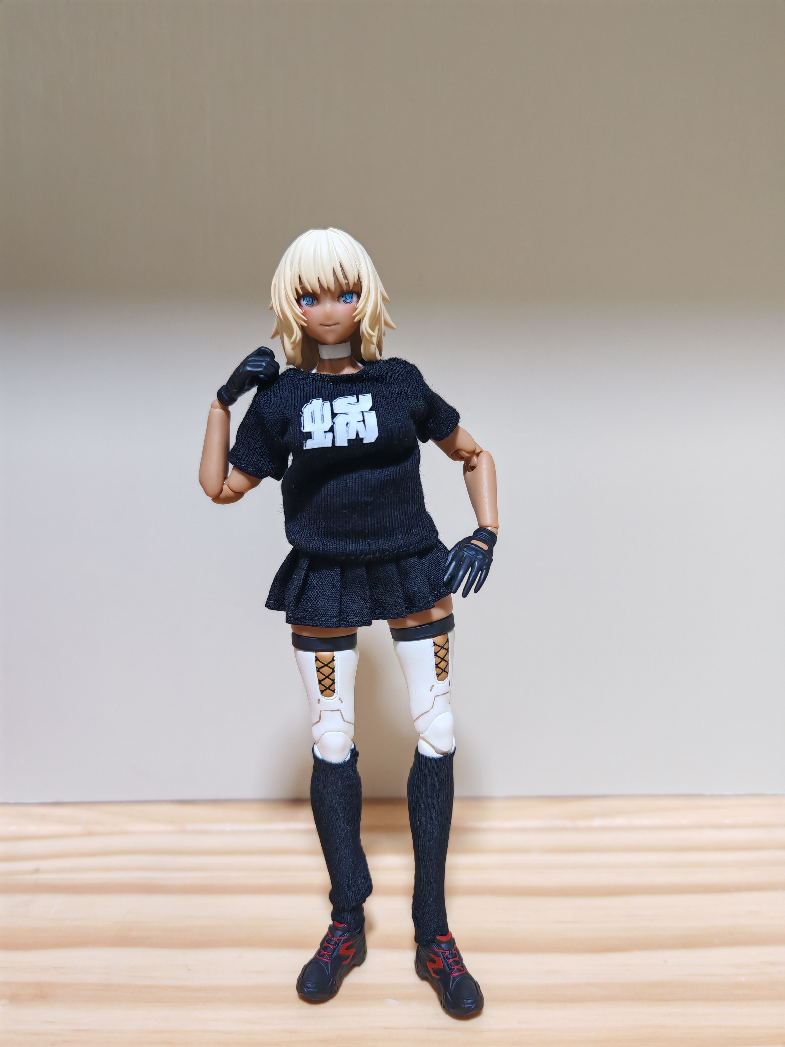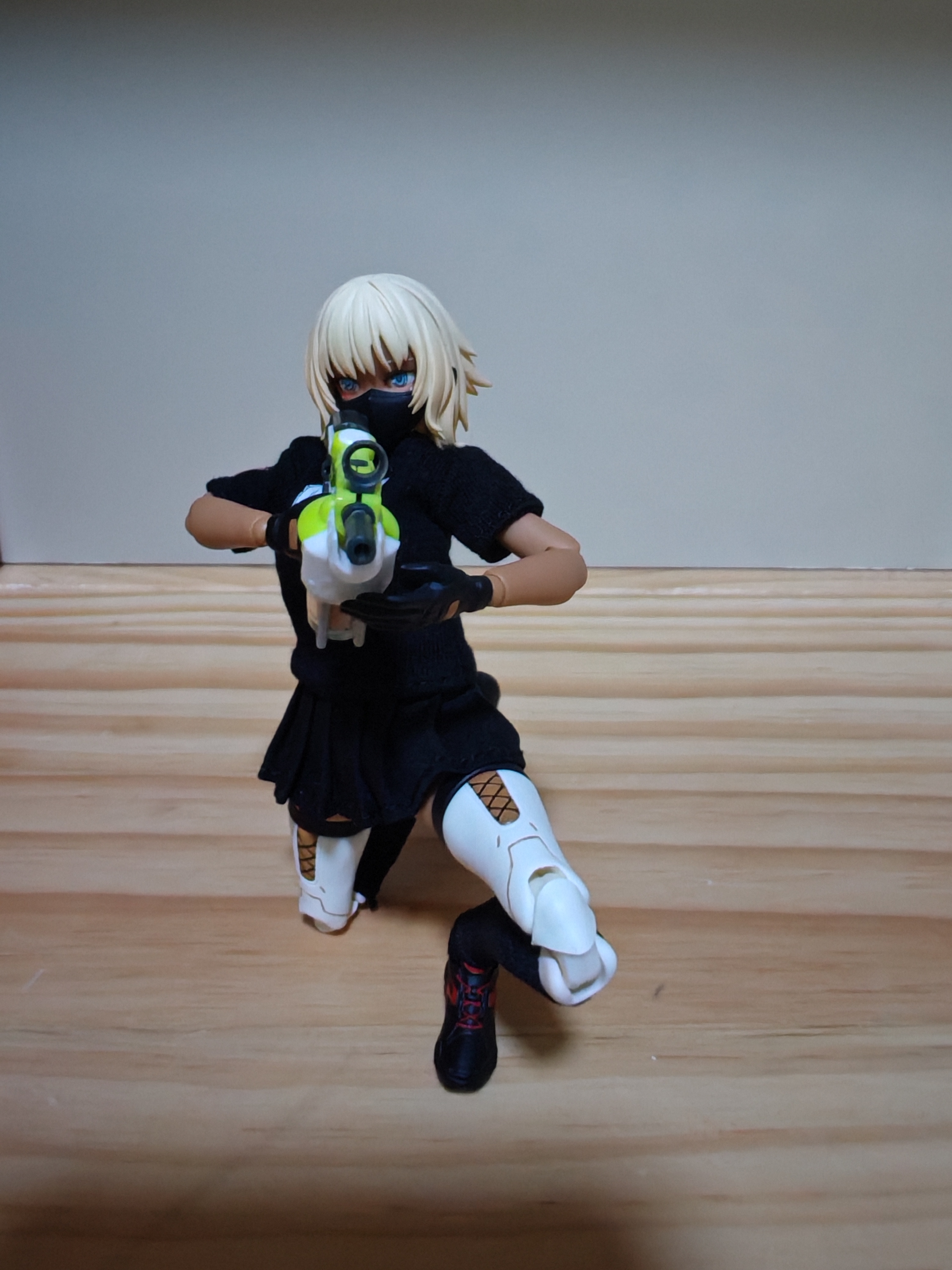蜗之壳的员工服到手了。可以给我的手办穿上展示一下了。终于不会因为过于手办暴露被猴子警告了。首先就是缪可。小麦色的皮肤配上一身黑,显得更有青春活力。戴上口罩,拿上枪。开始战斗。格莉莎:人家也想穿一下,格