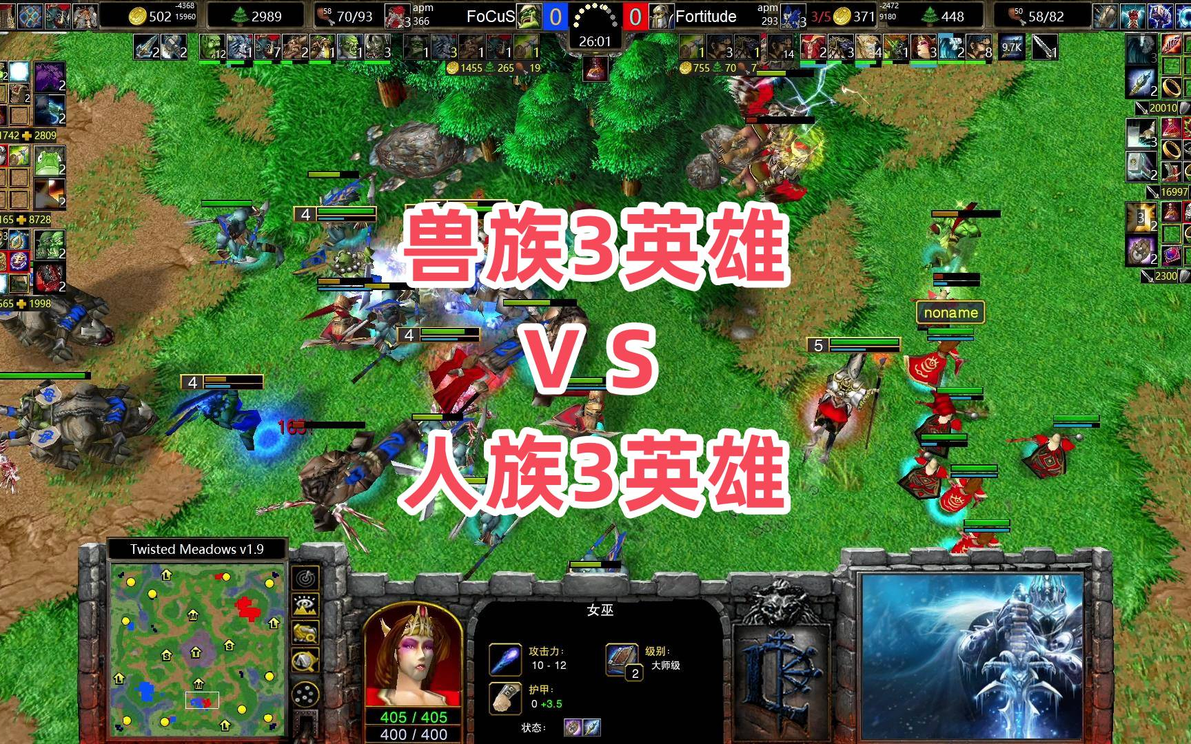 兽族3英雄VS人族3英雄 魔兽争霸3大帝解说 Fortitude vs FoCuS TM