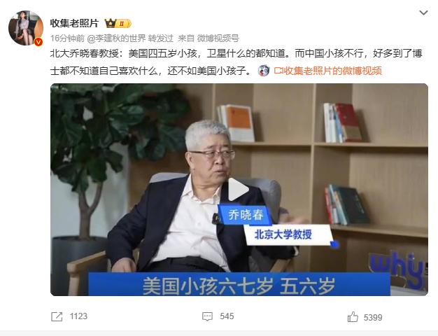 共8张北大乔晓春教授:美国四五岁小孩,卫星什么的都知道。而中国小孩不行