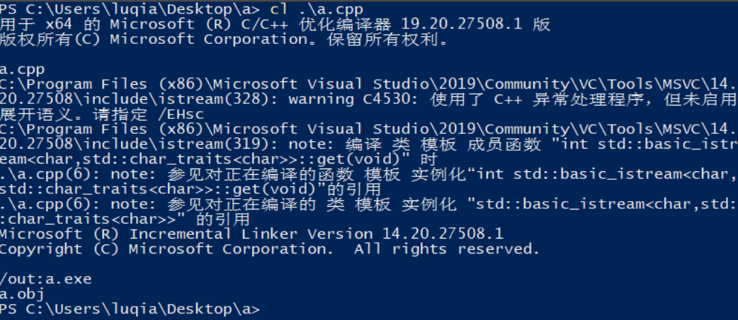 MSVC cl.exe fatal error C1034: iostream: 不包括路径集