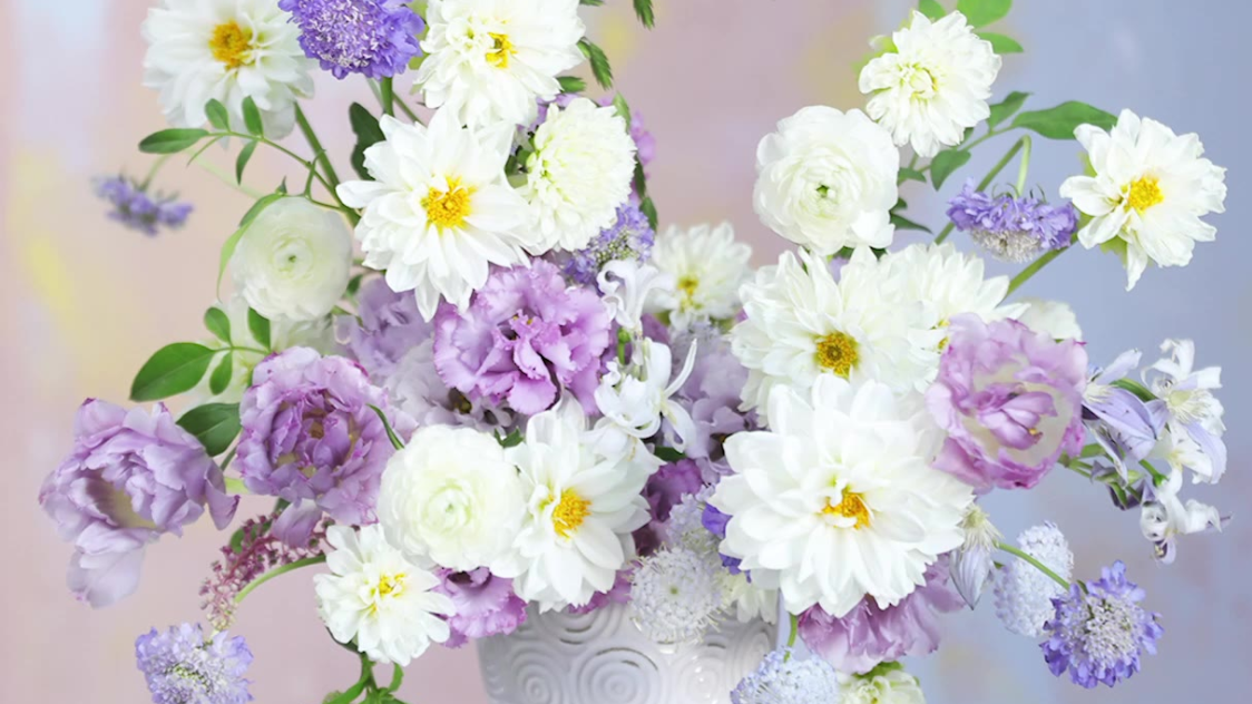 58次播放 | 01:07淡雅小丽花花翁插花-教你不用花泥也能插出好看的花艺作品