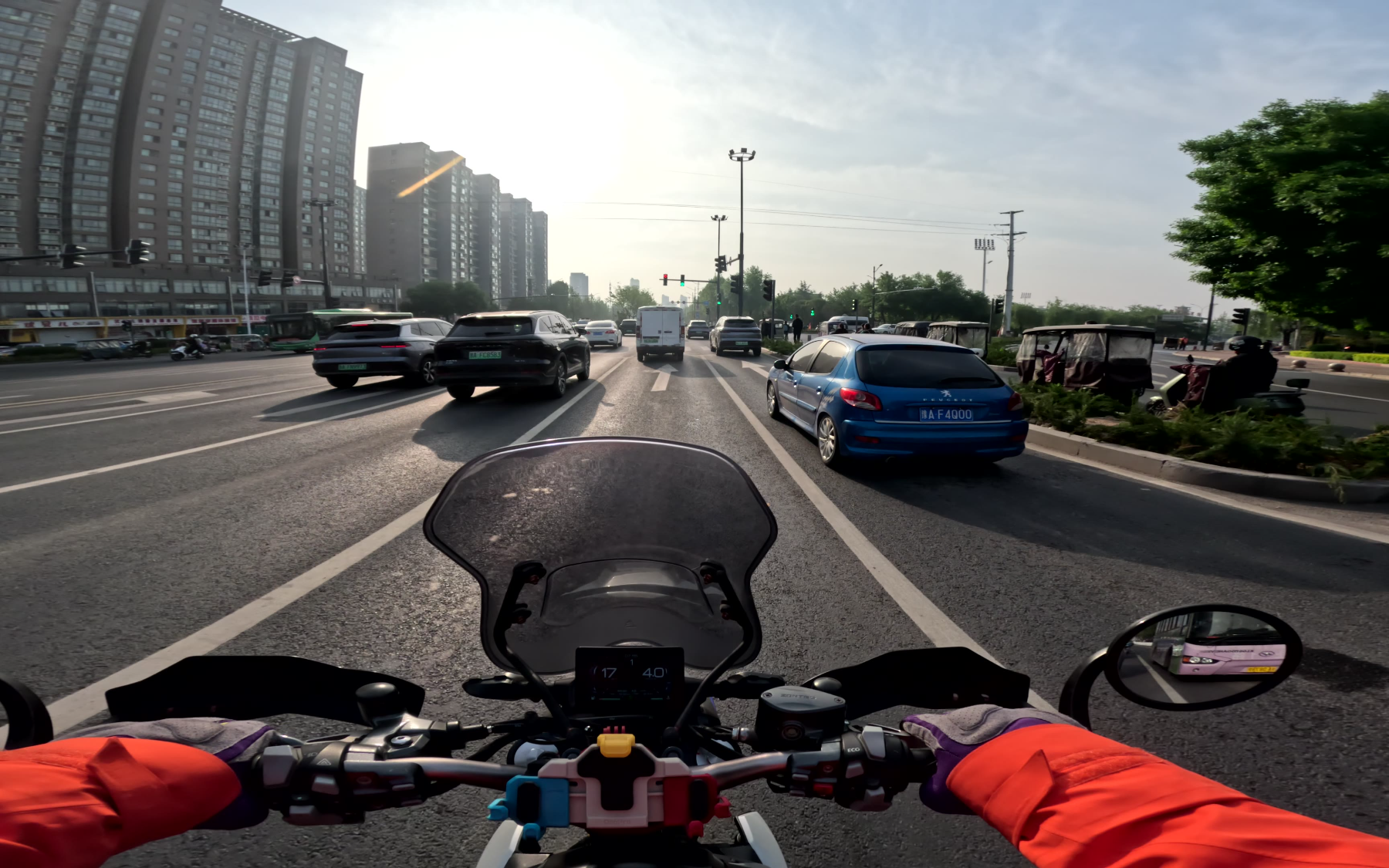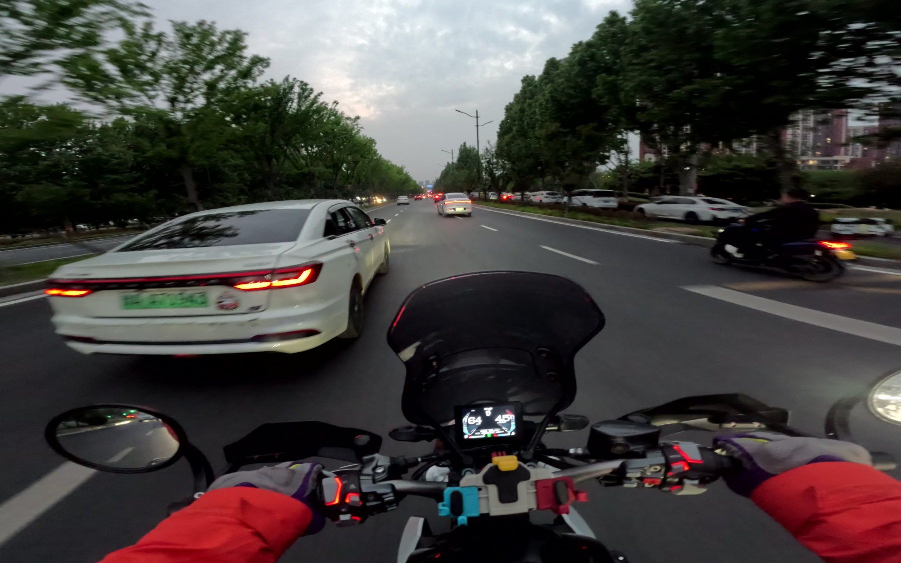 很难想像,一对骑摩托的情侣,完美复制了开车时驾驶位和副驾驶位的争执:“你刚刚变道为什么没打灯?”“你跟车跟太近了,慢点!”“你刚压线了没看到么?”“刚刚那车明显要拐弯,你咋没预判呢?”“骑车要多看后视
