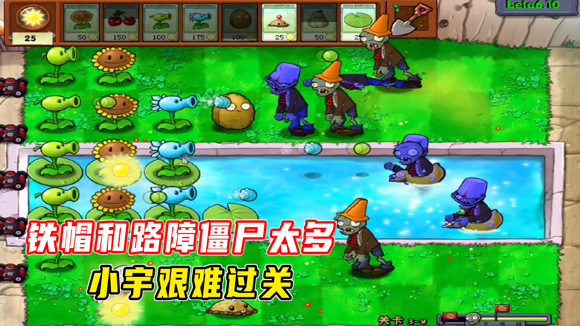 501次播放 | 06:20植物大战僵尸贝塔版13:铁帽僵尸和路障僵尸太多,小宇艰难过关