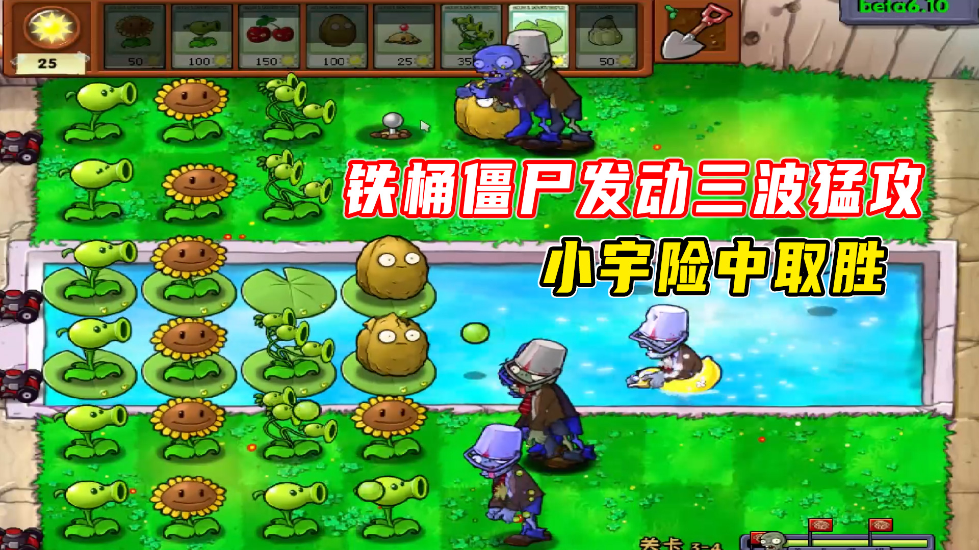467次播放 | 03:08植物大战僵尸贝塔版15:铁桶僵尸发动三波猛攻,小宇险中取胜