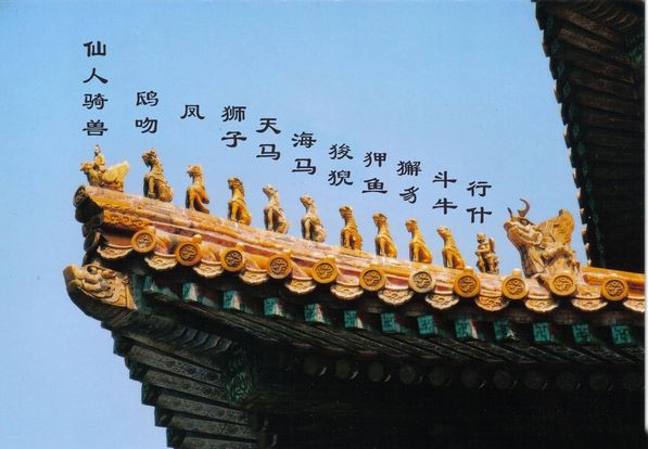 【中國.清朝】太和殿上的小兽在中国古建筑的岔脊上都装饰有一些小兽, 这些小兽排列有着严格的规定,按照建筑等级的高低而有数量的不同,全中国最多的是故宫太和殿上的装饰(共有10个)。这在中国宫殿建筑史上是