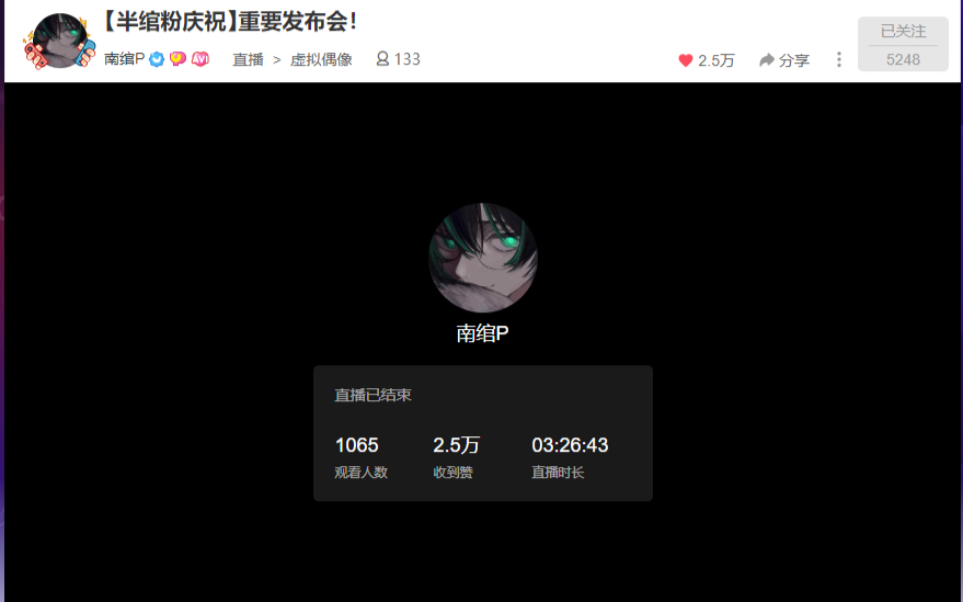 884次播放 | 01:54:04【5月14日录播】【南绾P】【半绾粉庆祝】重要发布会!由于视频文件损坏,开头及前半段内容丢失....