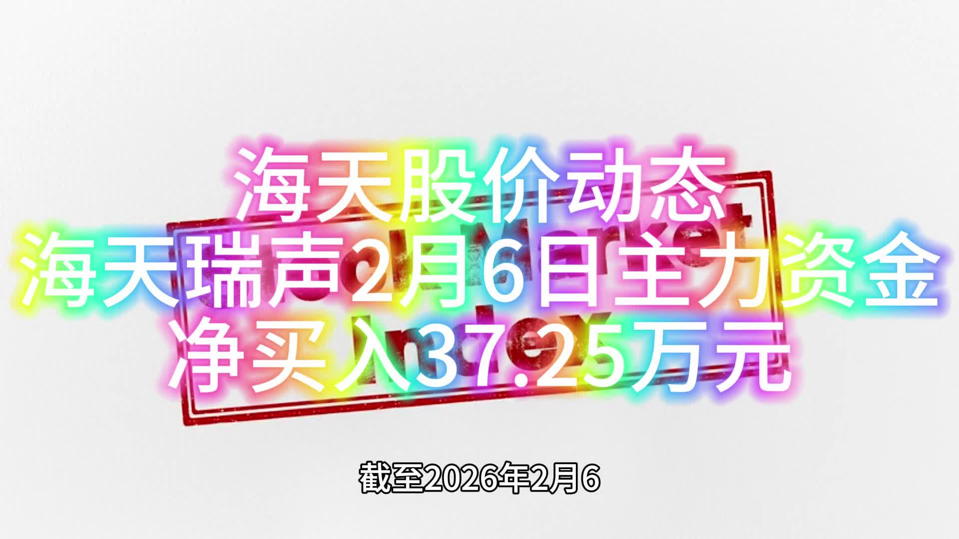 0次播放 | 00:50海天股价动态,海天瑞声2月6日主力资金净买入37.25万元
