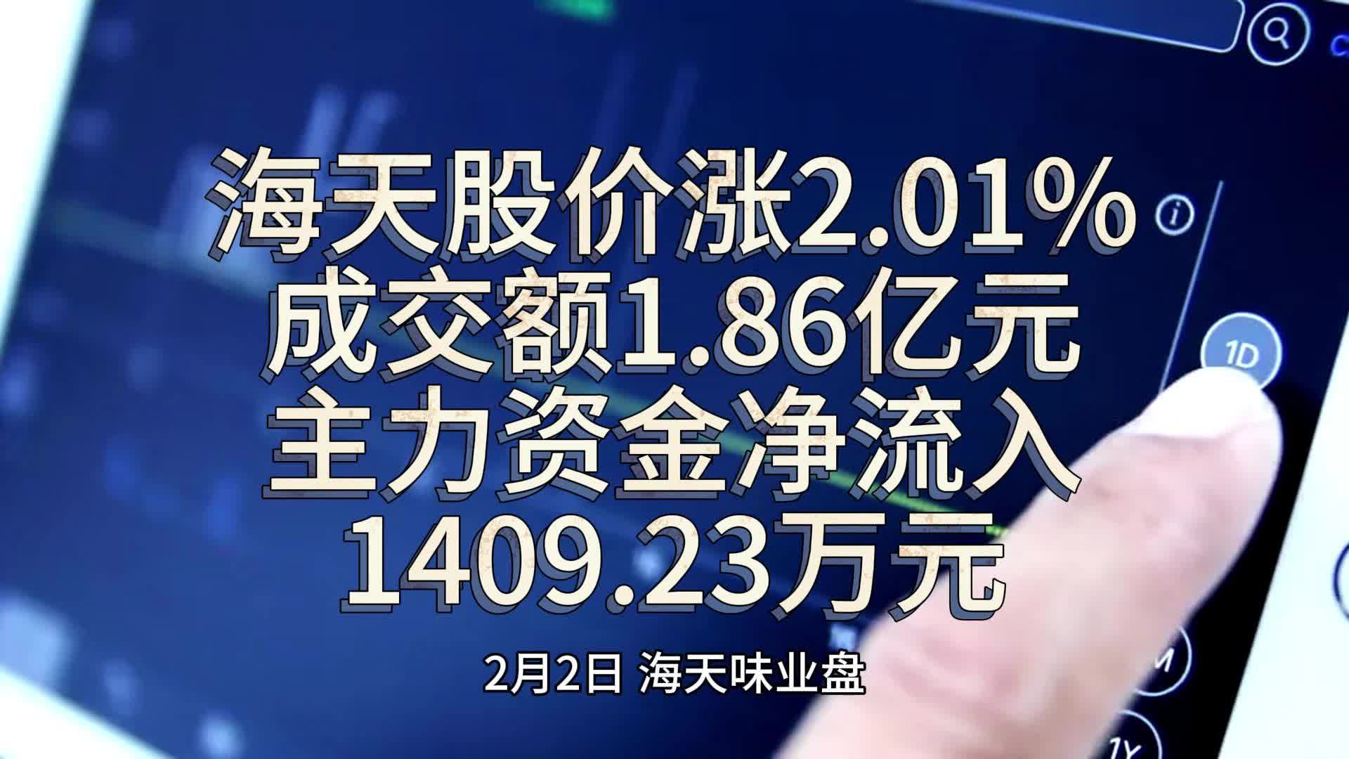 0次播放 | 06:30海天股价涨2.01%,成交额1.86亿元,主力资金净流入1409.23万元