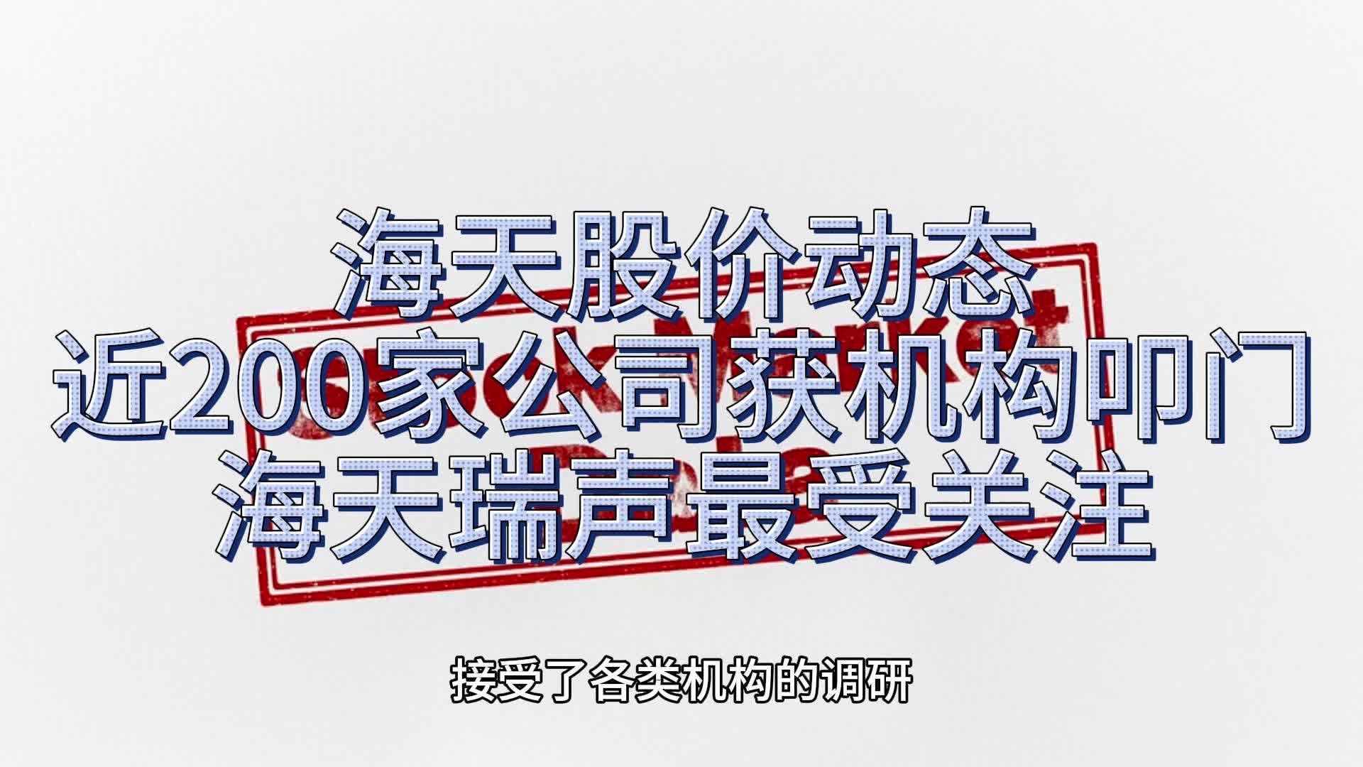0次播放 | 06:24海天股价动态,近200家公司获机构叩门,海天瑞声最受关注