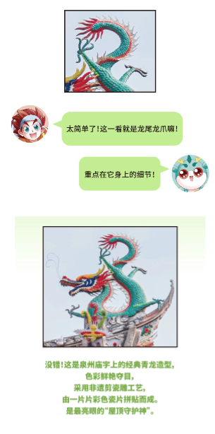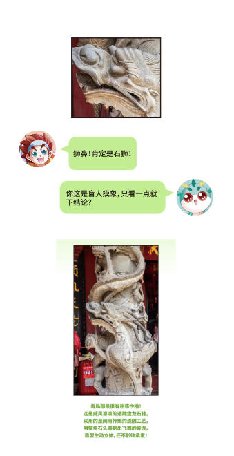 本期采风日记新鲜上线!这次玩法升级,带你在海丝印记里实景寻宝!根据线索猜猜,主创镜头里的泉州场景到底是哪?答对解锁惊喜哦~0102030405整理一下线索:剪瓷雕屋脊、透雕盘龙石柱高规格的龙首吊筒,跨