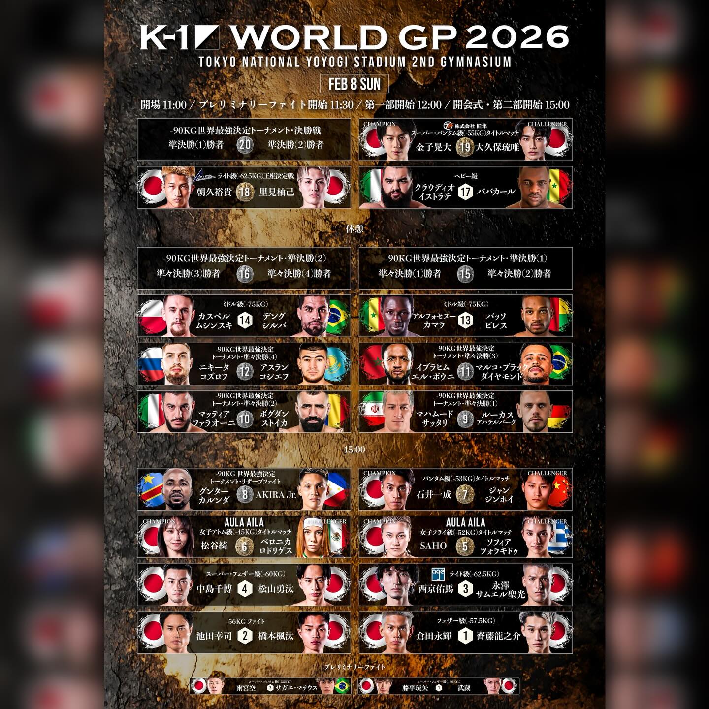 共17张2026年2月8日Glory荣耀格斗105:重量级八人总决赛