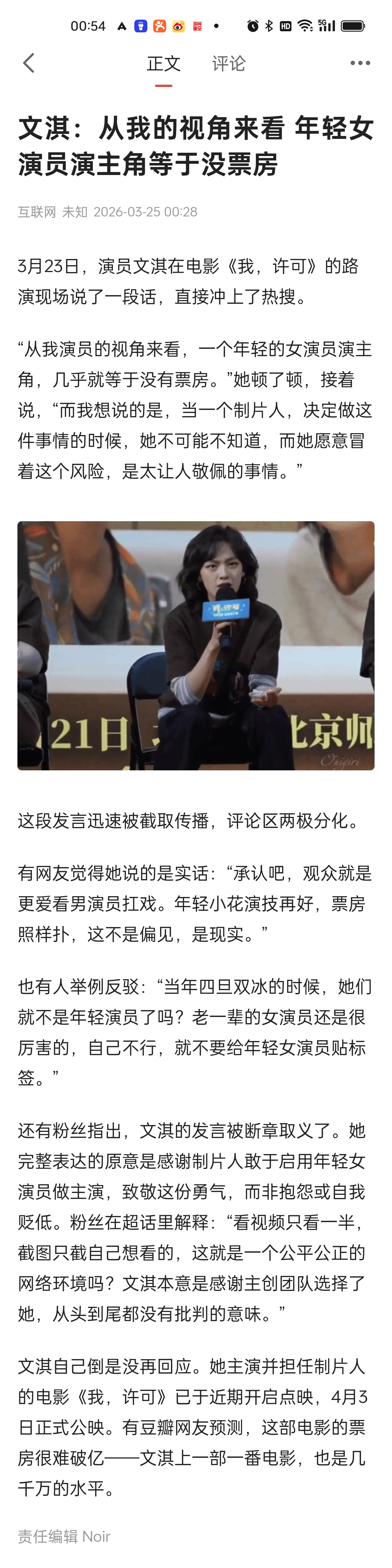 文淇:从我的视角来看 年轻女演员演主角等于没票房