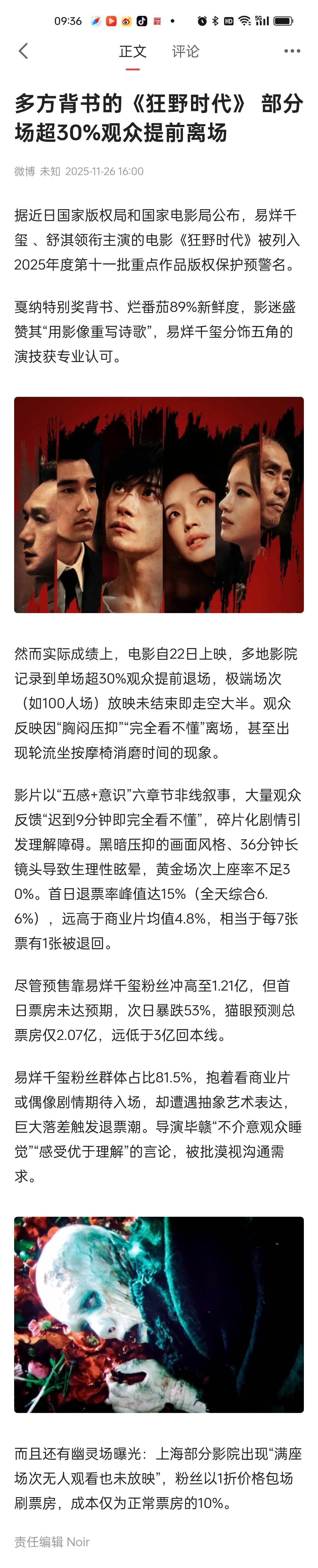 多方背书的易烊千玺 、舒淇领衔主演的电影《狂野时代》 ,部分场超30%观众提前离场