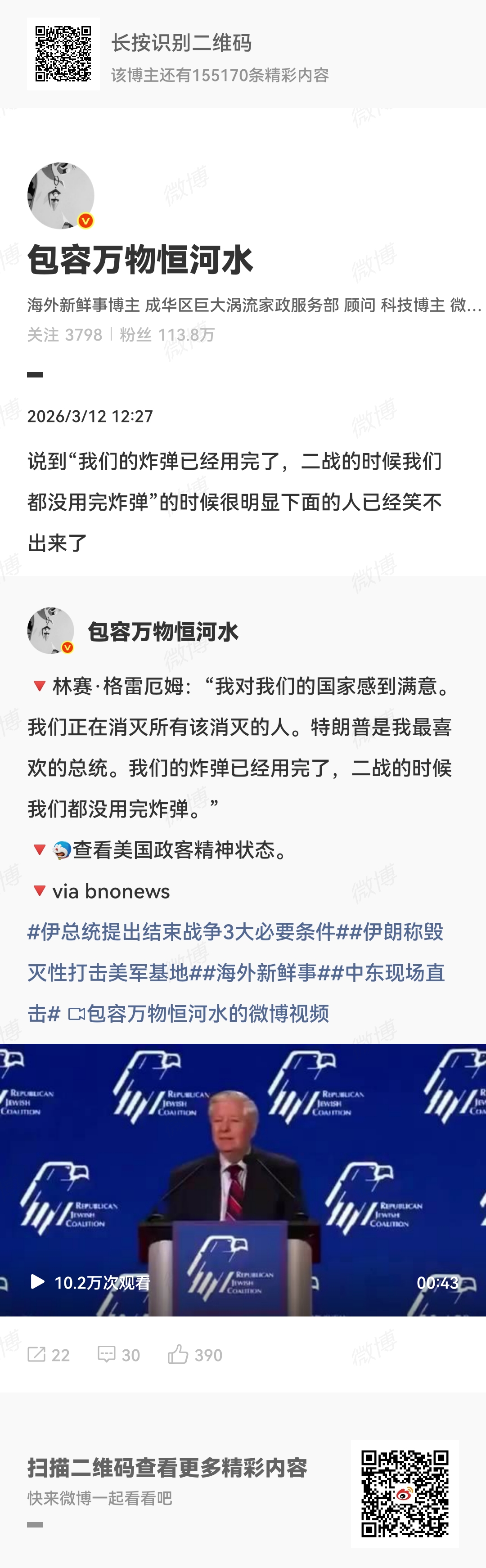 1161次播放 | 06:46美国共和党参议员林赛·格雷厄姆:没啦没啦!已经弄不出来啦!
